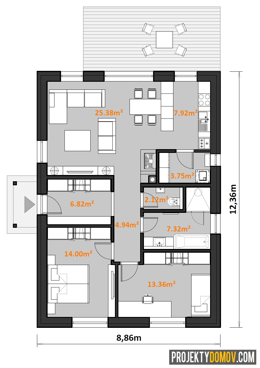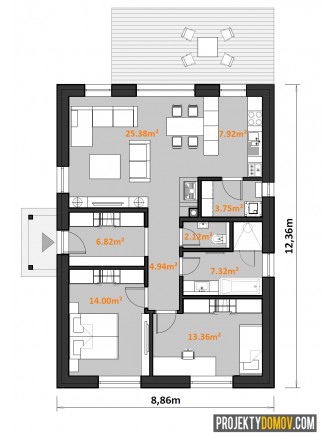 Pôdorys domu pôdorys, alebo vizuál domu uvedený na tejto stránke sa môže mierne odlišovať od aktuálnej verzii dodávaného projektu. Dôvodom je priebežné vylepšovanie a optimalizovanie realizačnej projektovej dokumentácie.