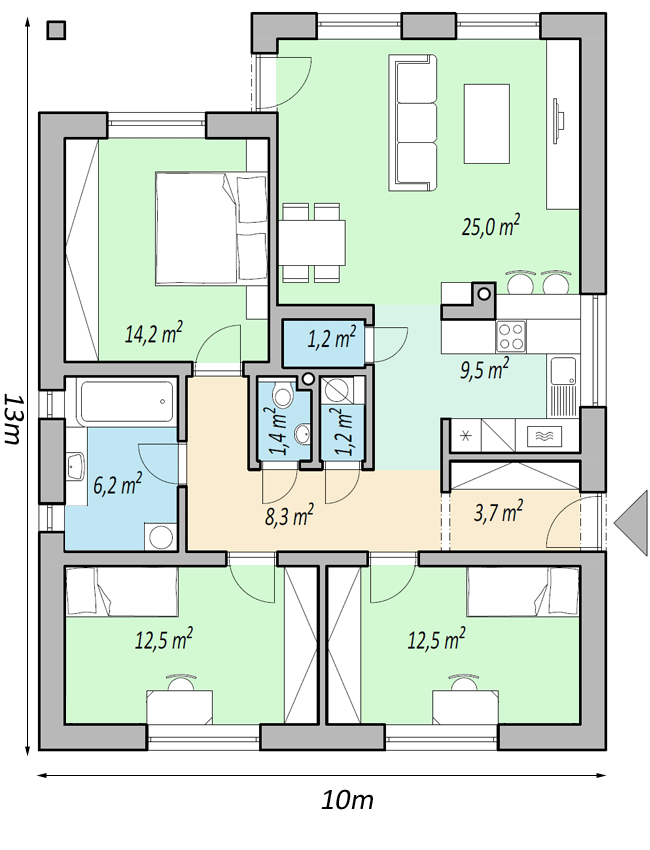 Chcete upraviť tento projekt? Drobné úpravy, ako napríklad vnútorné nenosné priečky, rozloženie sanity a podobne si môžete uskutočniť už priamo počas výstavby na základe nášho BEZPLATNÉHO autorského súhlasu. V prípade potreby taktiež vyhotovíme (za príplatok) prísluchajúce výkresy.Stredne veľké úpravy ako napríklad zmena typu, alebo tvaru strechy, pridanie, ubranie, posun, alebo zmena veľkosti stavebných otvorov (okien, dverí..), zobytnenie podkrovia, podpivničenie domu, alebo dostavba garáže Vám vyhotovíme za výhodných podmienok tak, aby bola cena vždy výhodnejšia než projekt na mieru.