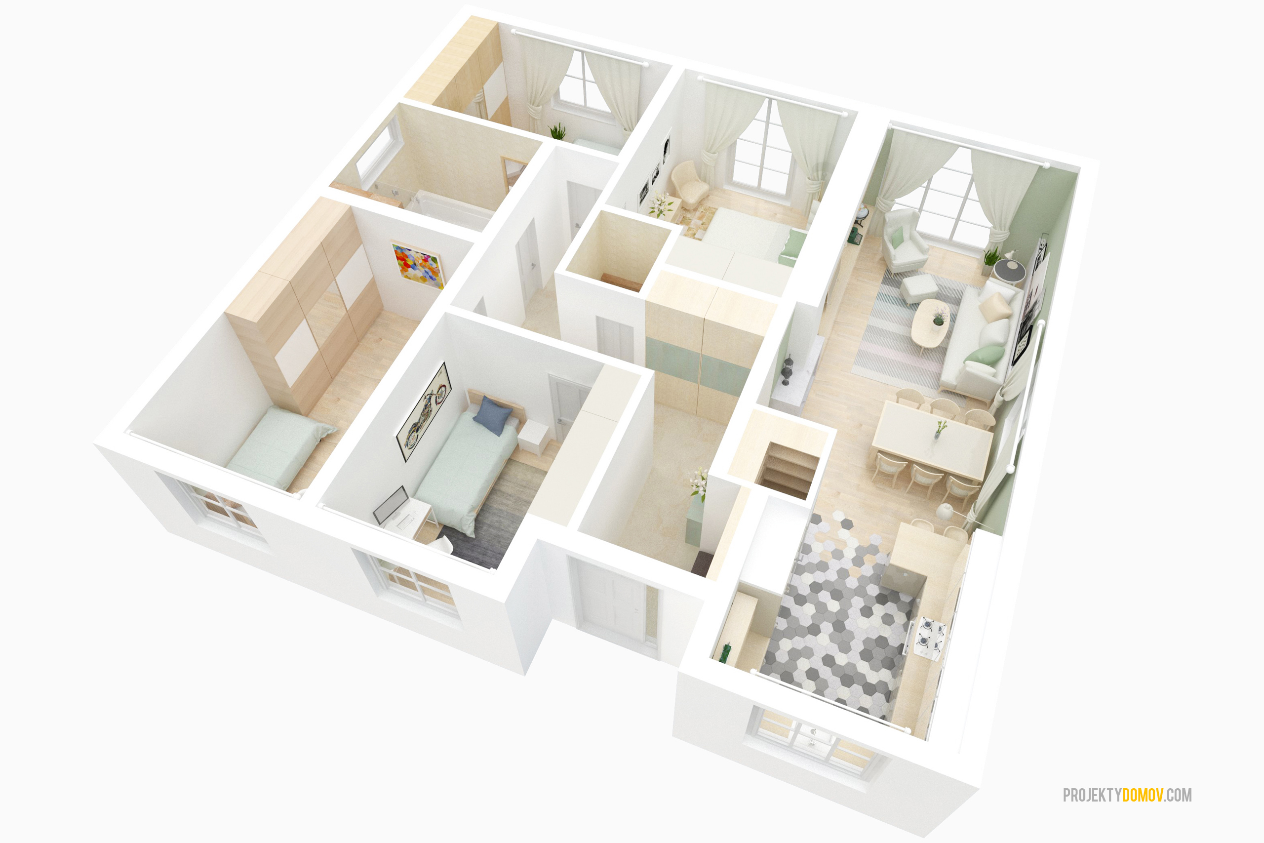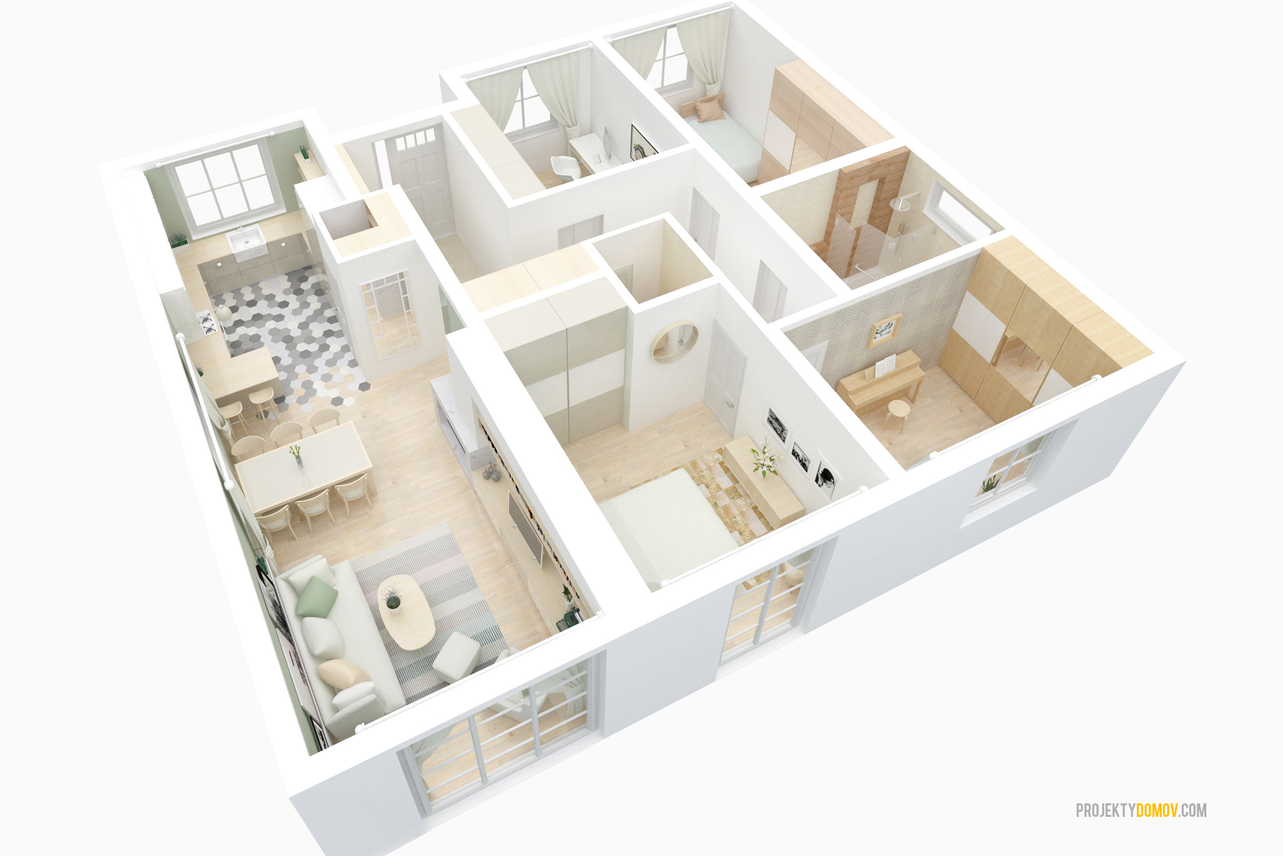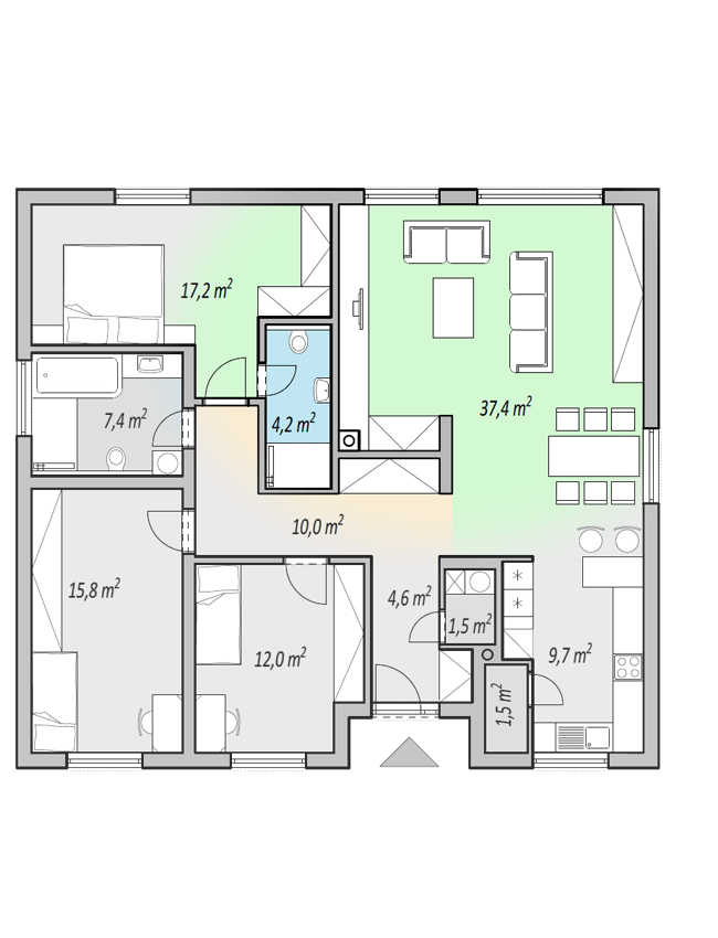 Pôdorys domu pôdorys, alebo vizuál domu uvedený na tejto stránke sa môže mierne odlišovať od aktuálnej verzii dodávaného projektu. Dôvodom je priebežné vylepšovanie a optimalizovanie realizačnej projektovej dokumentácie.