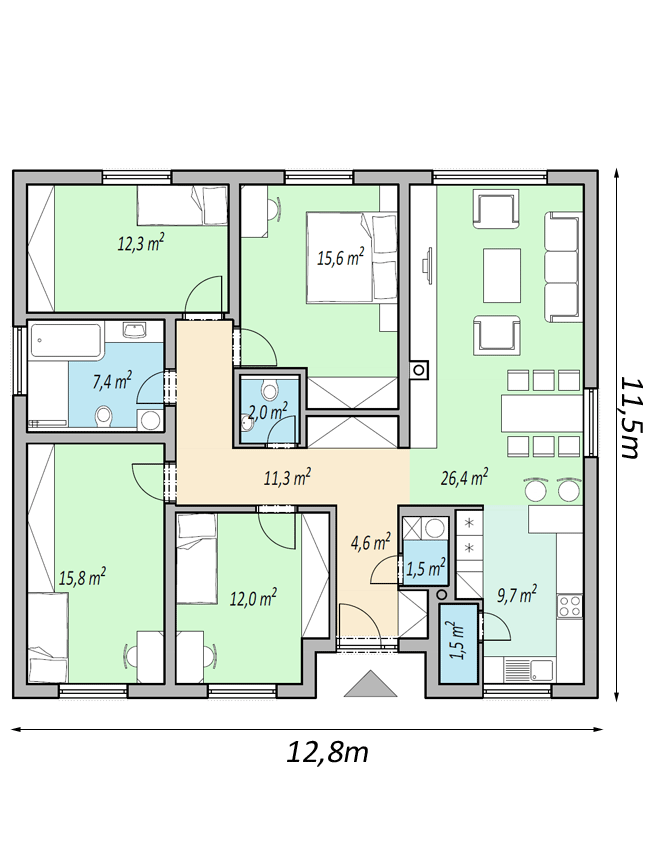 | celková úžitková plocha | 120 m2 |