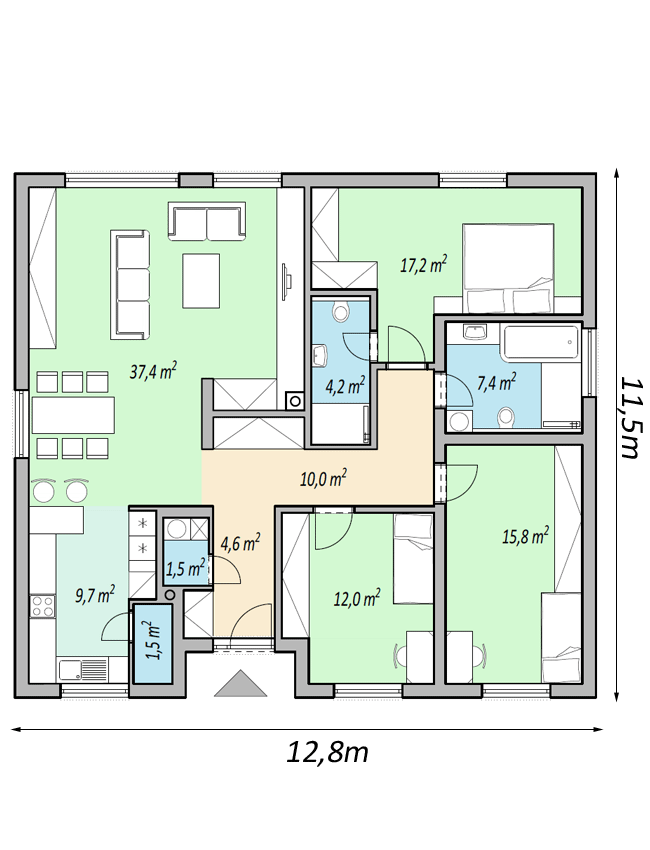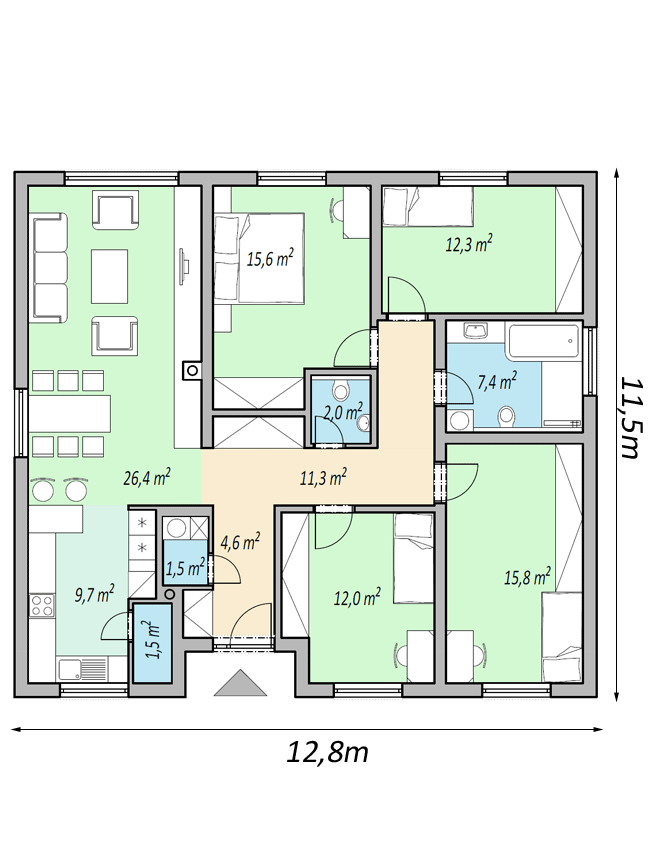Pôdorys domu pôdorys, alebo vizuál domu uvedený na tejto stránke sa môže mierne odlišovať od aktuálnej verzii dodávaného projektu. Dôvodom je priebežné vylepšovanie a optimalizovanie realizačnej projektovej dokumentácie.