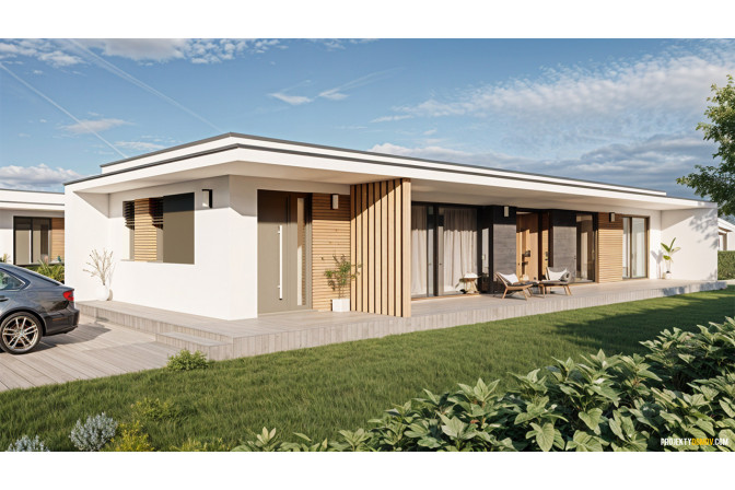 City 111 je väčším súrodencom modelu City 91 a ponúka ešte viac priestoru pre pohodlné bývanie. Moderný jednopodlažný dom s plochou strechou a čistou líniou pôdorysu je navrhnutý ako štýlové a praktické riešenie pre 4-člennú rodinu alebo tých, ktorí si potrpia na väčší osobný priestor.